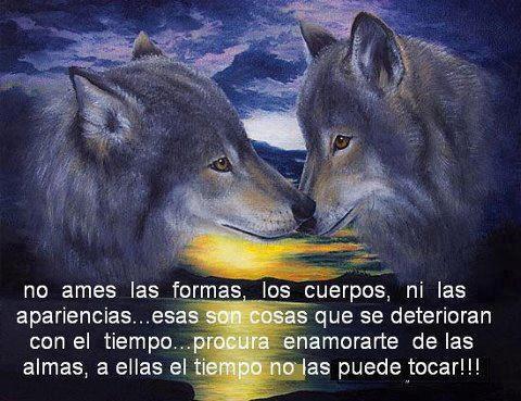 No ames las formas, los cuerpos, ni las apariencias... esas son cosas que se deterioran con el tiempo... procura enamorarte de las almas, a ellas el tiempo no las puede tocar!!!